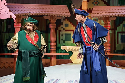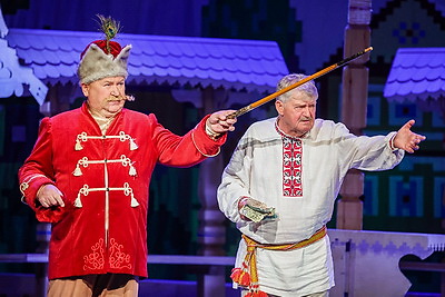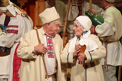 100-й, юбилейной сезон артисты Национального академического драматического театра имени Якуба Коласа открыли 21 сентября легендарным спектаклем "Несцерка". Впервые эта комедия была поставлена 18 мая 1941 года, в октябре 2006 года спектакль был обновлен. На большую сцену сыграть этот знаменитый спектакль вышел весь Коласовский театр. Главную роль сыграл заслуженный артист Республики Беларусь Петр Ламан. На снимке: во время спектакля. Фото Александра Хитрова, БЕЛТА.